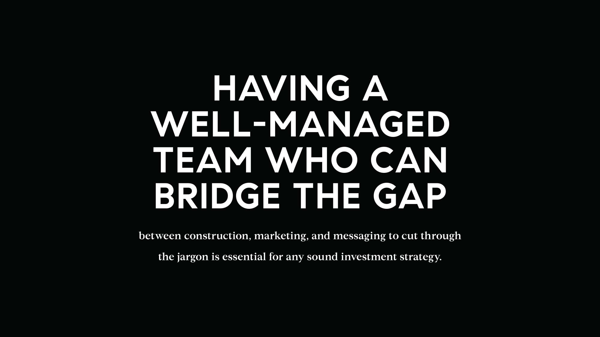 Team Foster is dedicated to understanding each client’s individual needs by providing them with exceptional support and guidance. We understand the myriad complexities involved in real estate investments and are here to interpret the messages coming from competing goals to protect your interest. Having a well-managed team who can bridge the gap between construction, marketing, and messaging to cut through the jargon is essential for any sound investment strategy.